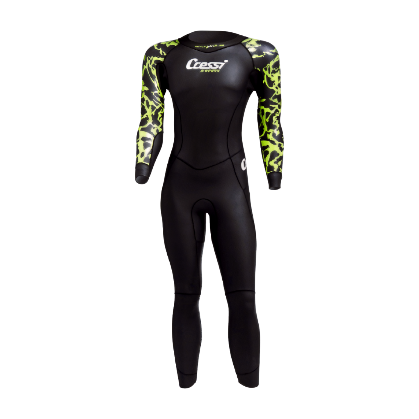 Cressi Kuwae 2 mm swimming wetsuit ššāļø: a one-piece suit designed for swimming and open water, inspired by the underwater caldera of Kuwae (Vanuatu archipelago, South Pacific). Its "explosive" design and fluorescent color on the upper part are reminiscent of volcanic lava, while fulfilling an essential need: to offer the swimmer maximum visibility in open water, for greater safety.